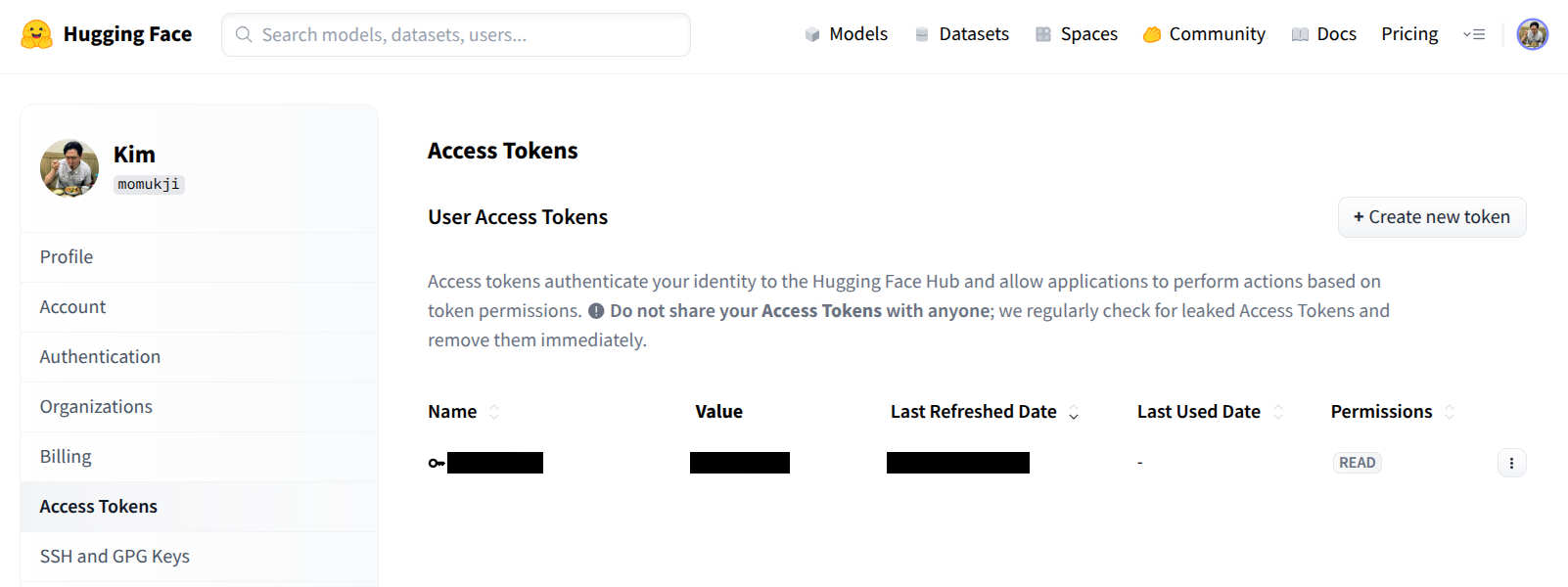 HuggingFace Token 생성 후 서비스 연결